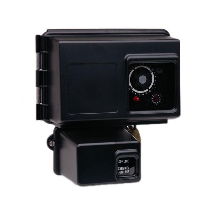 The Fleck 2900S is a rugged commercial/industrial water softener valve with the standard electromechanical control and mechanical meter. The inlet and outlet is 2" for continuous flow rate up to 106 GPM.